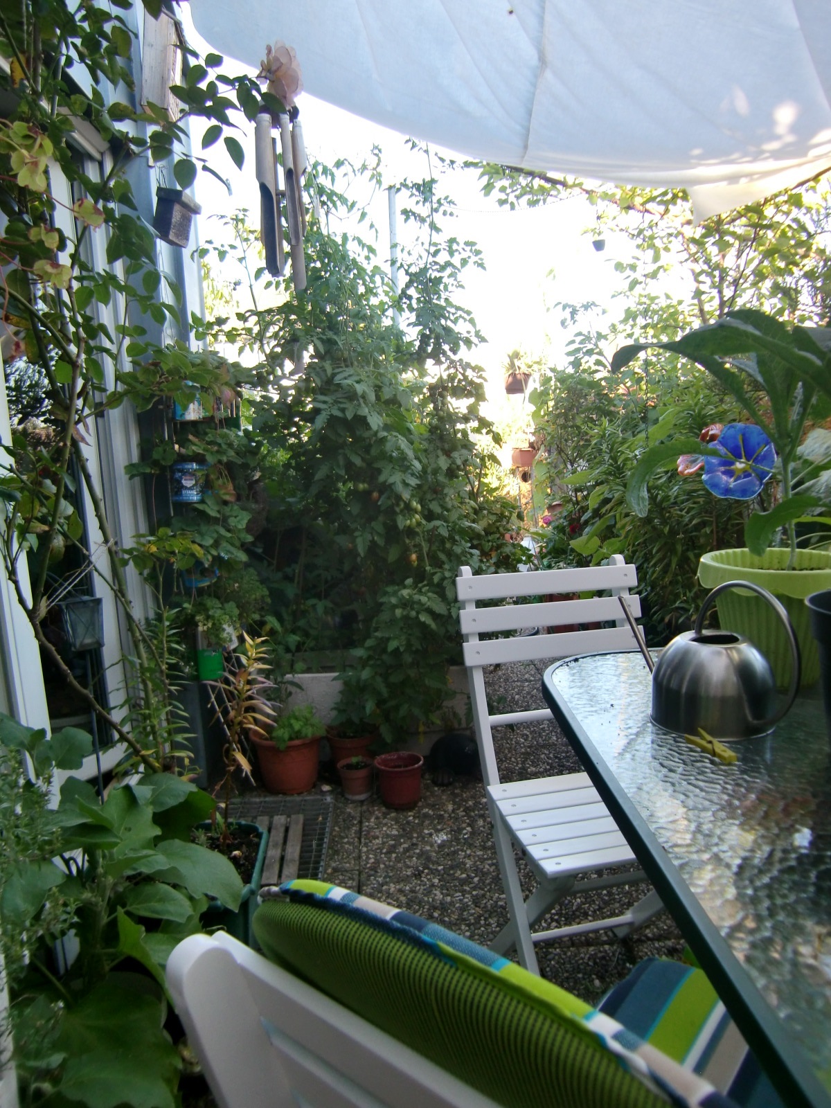 Blick auf unseren lauschigen Sitzplatz im Grünem.
