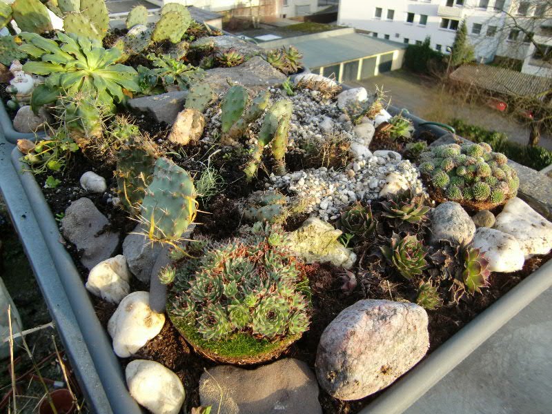Bei mehr oder weniger Sonnenschein mit den ersten Gestaltungsarbeiten begonnen. Heute sollten die winterharten Kakteen und Sukkulenten ein neues Quartier bekommen.