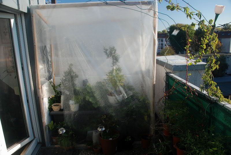 Für die nicht ganz so winterharten Kübelpflanzen wurde ein Foliengewächshaus gebastelt.