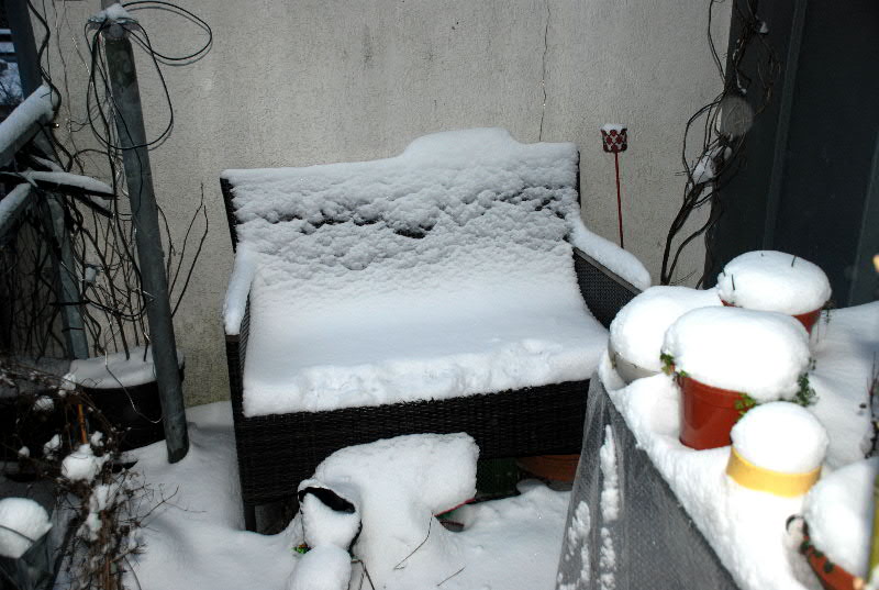 Die Dachterrasse ist auch in diesem Winter im Schnee versunken.