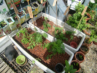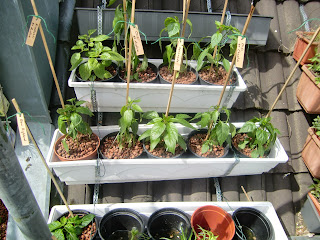 Ein Teil der Chilis ist an der Sommerfrische. Die bei den restlichen Sorten sind die Pflanzen noch arg klein um nach draussen zu könne.